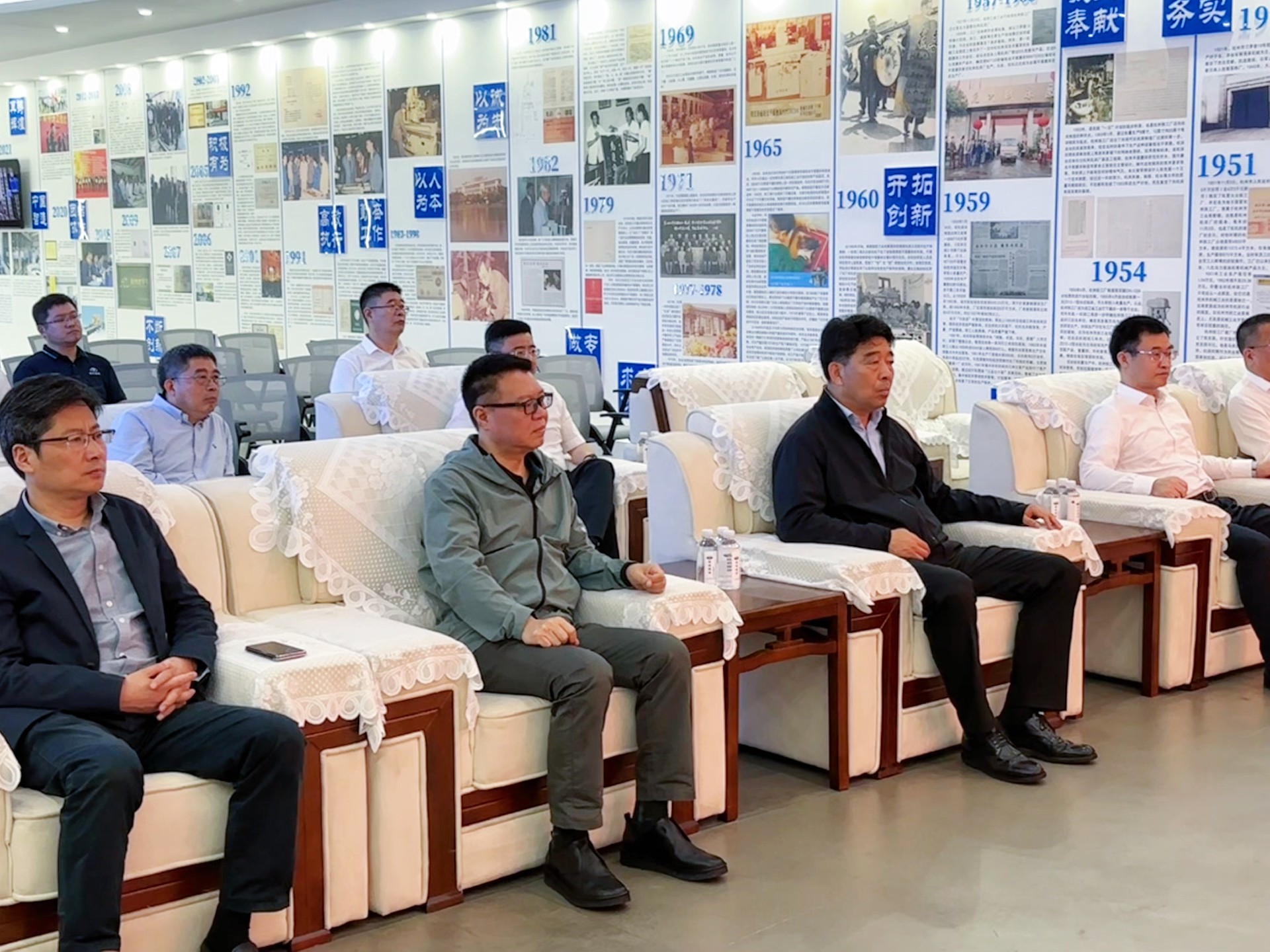 柯吉欣副省長一行先參觀了杭機股份展廳,通過百年杭機宣傳片了解杭機發(fā)展史,他表示杭機股份歷經(jīng)百年不易,應(yīng)擔(dān)起民族使命,將企業(yè)發(fā)展與國家政策走向深入結(jié)合。制造業(yè)是立國之本,強國之基,機床更是工業(yè)母機,行業(yè)前景良好,發(fā)展空間很大。