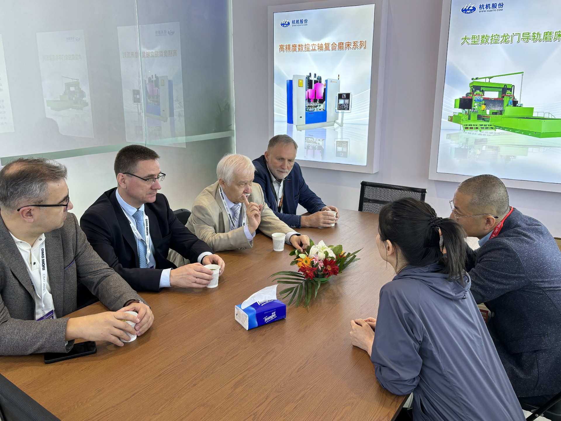 上海機(jī)床廠執(zhí)行董事、總經(jīng)理王宇一行蒞臨杭機(jī)展臺交流