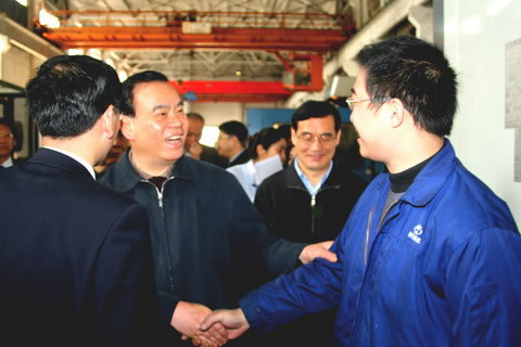 呂省長在精機公司加工車間時,與精機公司經(jīng)理潘順昌、副經(jīng)理杜建勝親切握手并交談,當(dāng)呂省長得知他們現(xiàn)是該公司的管理人員,并已在企業(yè)工作幾十年,欣喜地對周圍人員說,看上去那么年輕,卻有豐富的實踐經(jīng)驗,這是企業(yè)的寶貴財富。呂省長感慨地說,杭機集團(tuán)發(fā)展很快,原來廠區(qū)在環(huán)城東路時,就有近二千名員工,而現(xiàn)在人員減少,經(jīng)濟效益卻明顯提高,變化真大。呂省長指出,要充分認(rèn)識加快發(fā)展裝備制造業(yè)的重要性和緊迫性,進(jìn)一步加快發(fā)展裝備制造業(yè),推動產(chǎn)業(yè)結(jié)構(gòu)優(yōu)化升級和經(jīng)濟增長方式轉(zhuǎn)變。