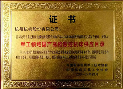 軍工行業(yè)國產(chǎn)數(shù)控機(jī)床應(yīng)用工作專家委員會(huì)嚴(yán)格篩選并通過在應(yīng)用現(xiàn)場效果評價(jià),最終確定我公司開發(fā)的MGKF600/8數(shù)控高精度立式復(fù)合磨床列入了軍工領(lǐng)域國產(chǎn)高檔數(shù)控機(jī)床供應(yīng)目錄,杭機(jī)股份將作為軍工采購國產(chǎn)機(jī)床的重點(diǎn)推薦企業(yè)。