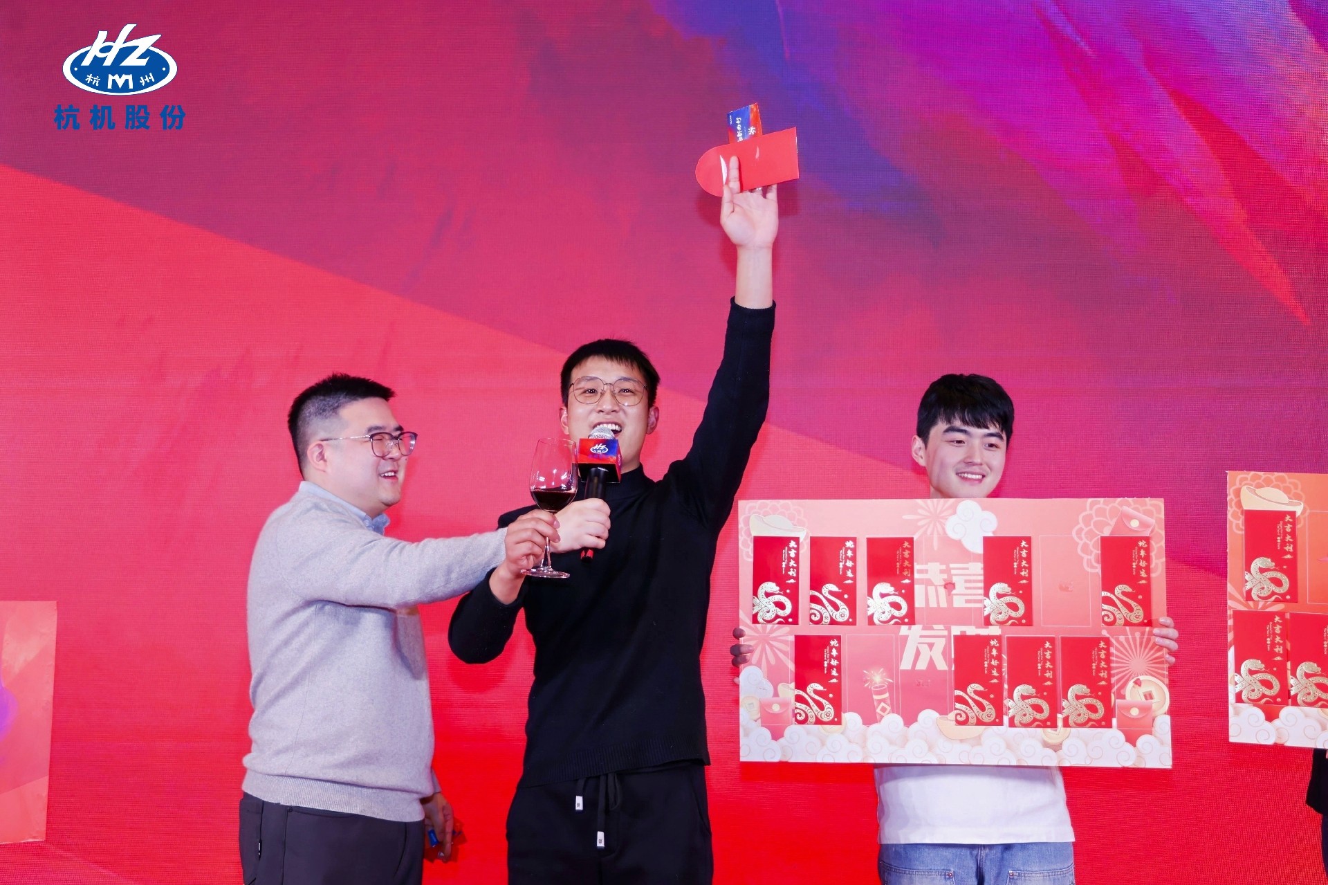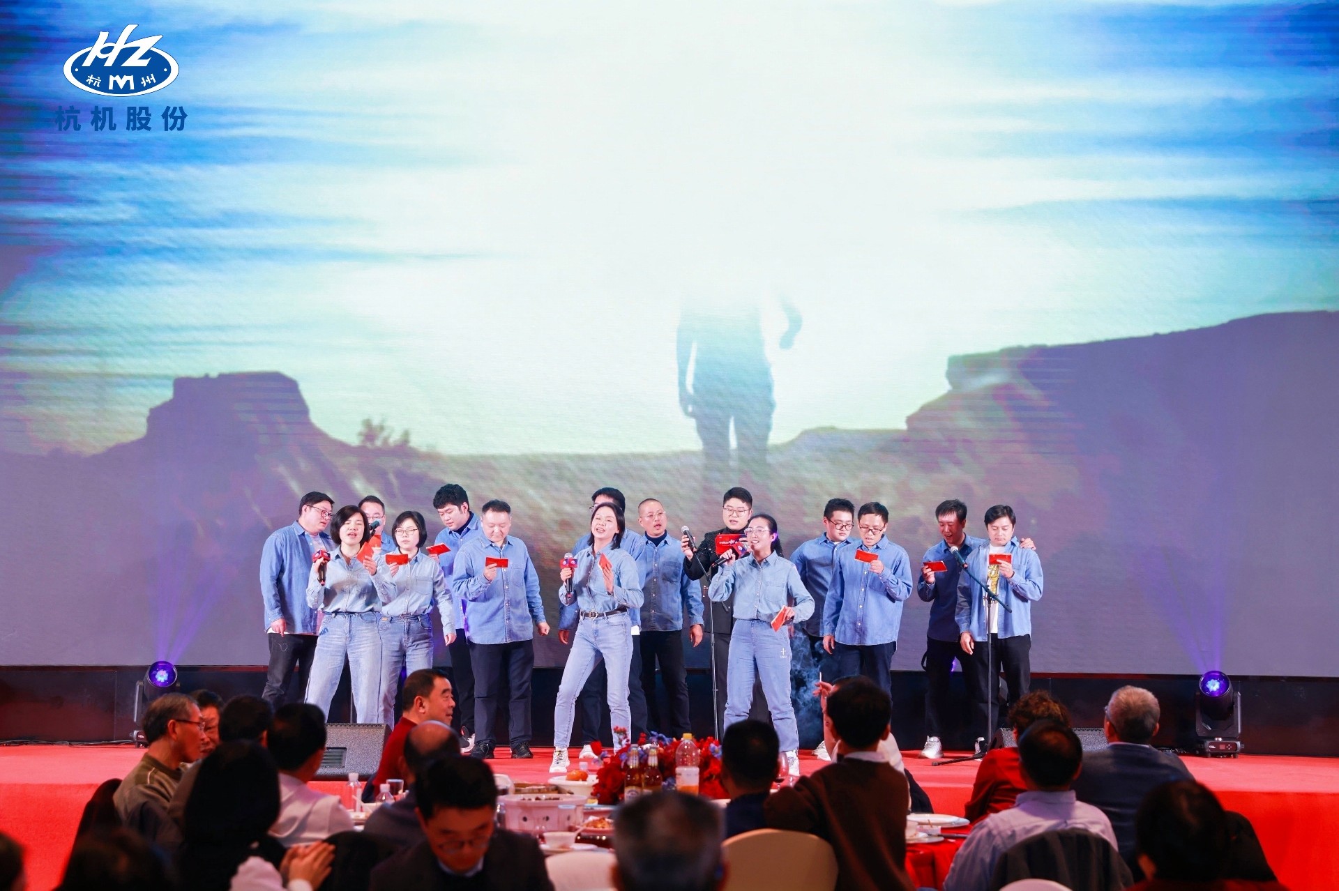 晚宴中杭機(jī)股份董事長于立鵬先生致祝酒辭,并攜杭機(jī)股份全體董事會(huì)成員及經(jīng)營班子共同上臺(tái)祝酒。于董首先對(duì)過去一年關(guān)心支持杭機(jī)發(fā)展的各級(jí)政府與全體杭機(jī)家人們表示感謝,并強(qiáng)調(diào)杭機(jī)一直以來是一個(gè)有文化認(rèn)同,有傳承精神的企業(yè)。展望新的一年,我們將會(huì)繼續(xù)發(fā)揚(yáng)杭機(jī)精神,緊緊抓住新的發(fā)展機(jī)遇,不斷提升管理水平,加大技術(shù)創(chuàng)新投入,拓展市場渠道,為社會(huì)貢獻(xiàn)更多精品、為股東創(chuàng)造更多價(jià)值,為員工提供更好的發(fā)展平臺(tái)和福利待遇,團(tuán)結(jié)一心,攜手共進(jìn),共同開創(chuàng)杭機(jī)更加美好的明天!牢筑發(fā)展基石,踏上新的征程,向新而行,向上而行!